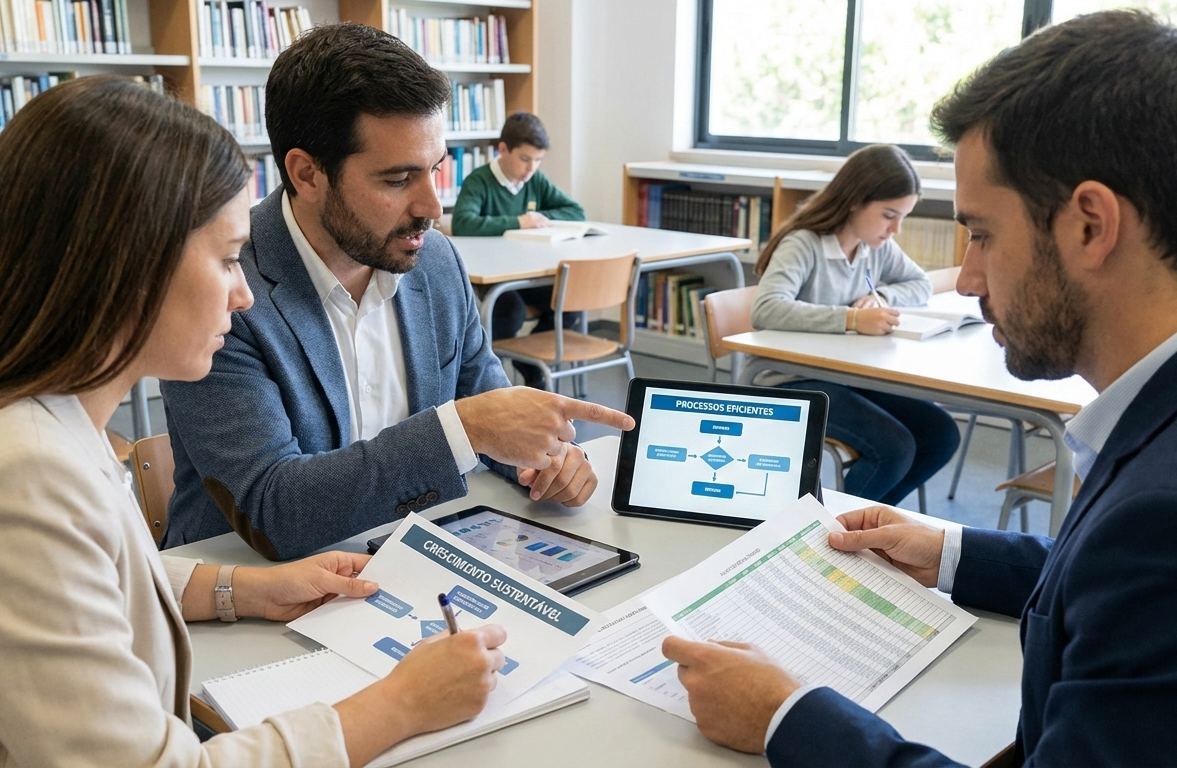 Formação voltada à qualificação dos processos de gestão escolar, incluindo as dimensões da gestão e a construção de resultados a partir da análise de evidências. O curso desenvolve métodos de produtividade, organização, monitoramento de resultados e práticas de gestão específicas para o ambiente escolar. Público-alvo: Gestores escolares, tesoureiros, secretários escolares, coordenadores pedagógicos, orientadores educacionais e demais profissionais que ocupam cargos de liderança e atendimento. Módulos Mapeamento e Estruturação de Processos Escolares Gestão de Tempo, Rotinas e Eficiência Operacional Planejamento do Desenvolvimento Profissional da Equipe Avaliação, Monitoramento e Entrega de Resultados Pedagógicos Mentoria avançada por unidade escolar/função